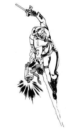Several different personal flight devices exist in 1948, the most iconic being the wellknown jetpack. |