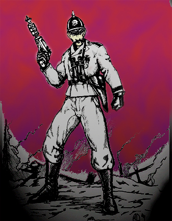 A veteran of WWI, infused with a super soldier formula and armed with a ray gun, Krieg is an extremely dangerous foe